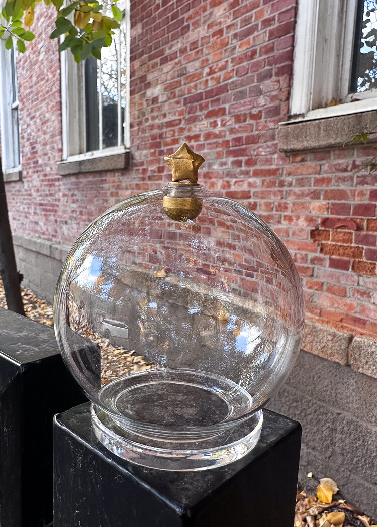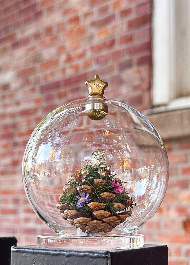 블로잉 유리에 손으로 조각된 별모양의 손잡이가 달린 오너먼트 케이스입니다. 아크릴 소재의 디스플레이 원형 트레이가 함께 제공됩니다. 손잡이 후면에 작게 적힌 73ap 각인이 새겨져 있습니다. 주얼리 보관함, 오브제, 누군가를 위한 선물이 될수 있습니다.