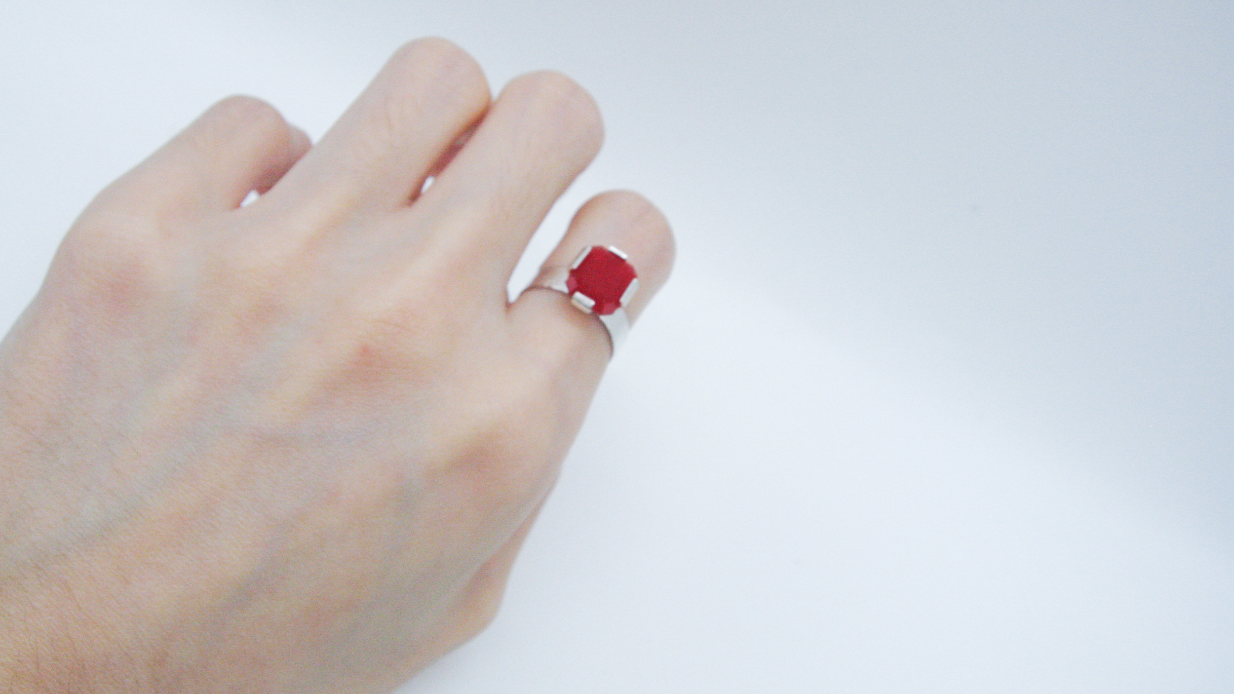 스퀘어 모양으로 컷팅된 붉은 체리석이 세팅된 실버 피스입니다.
